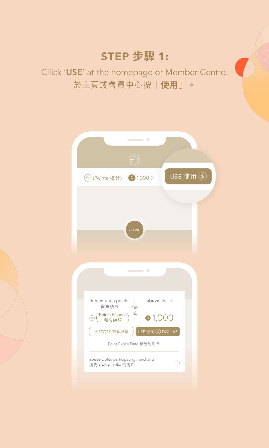 From 1 September 2023, above members can convert points into above Dollar via Pacific Place Mobile App. Every 1 above Dollar can be used as HK$1 cash at designated merchants instantly!